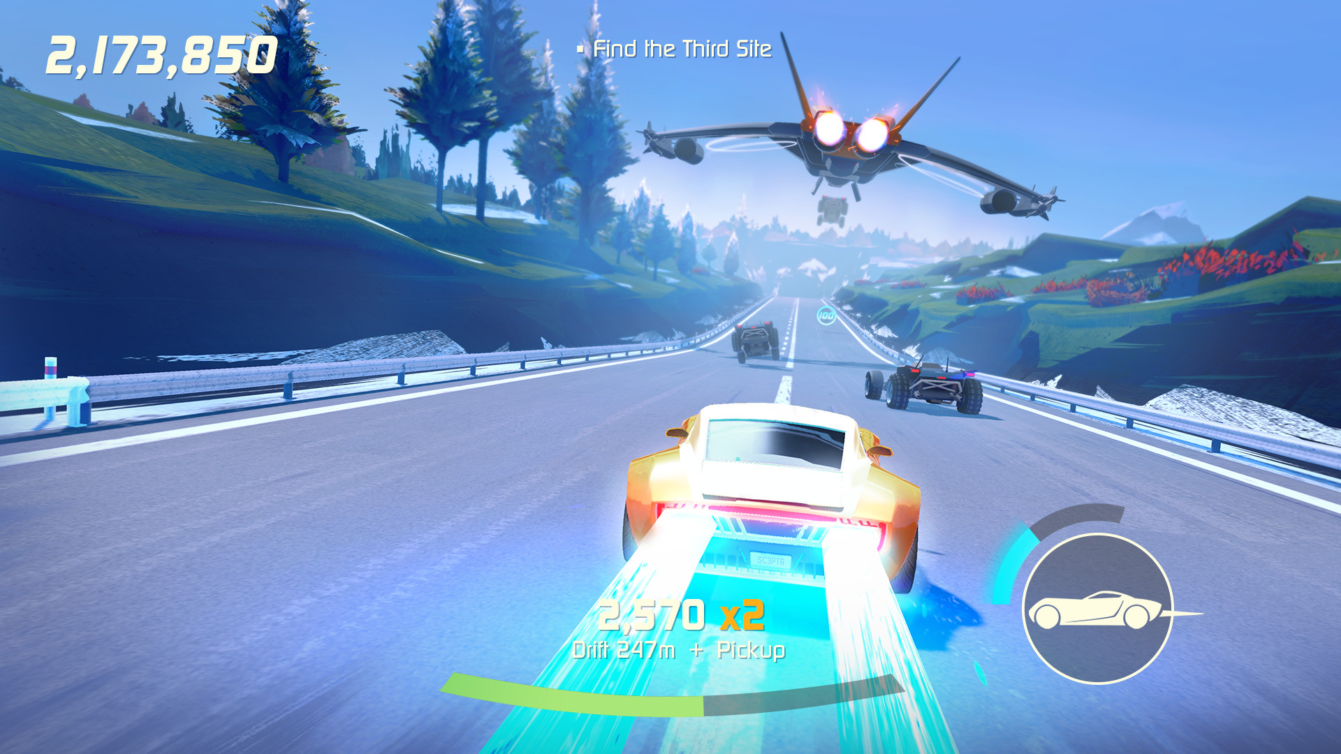 Progression in the game and side missions are tied to mission objectives. There are five per level and completing the level is only one of them. The others usually ask you to drift for a certain length, get a certain multiplier, take down X amount of enemies or beat a certain time. They stack but you’ll need to complete between half and two-thirds of them to unlock the final level in each of the three chapters in story mode. I didn’t need to backtrack but would have been happy to given just how much fun the game was.