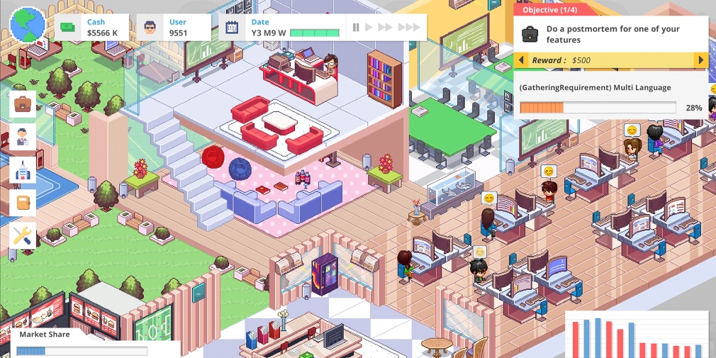 With all that moaning, I did enjoy my time with Startup Panic but got more bored of it the longer I played. Tycoon and management gamers will likely get the most out of it but I just found most of the systems quite shallow and undermined by the dominance of the feature creation. If there was more nuance and better feedback about why you do the things you do, then this would be a better game. At the moment its a fans only recommendation for a light hands off tycoon game.